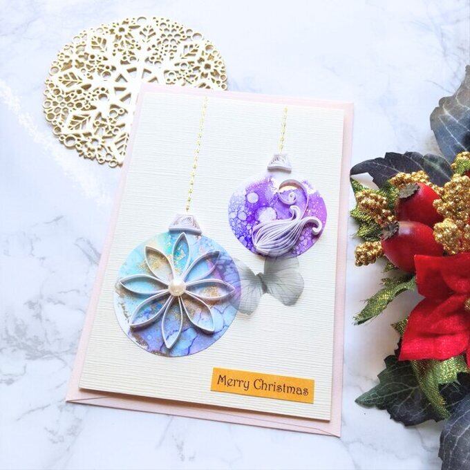 アルコールインクアートの模様も美しい、クイリングで作ったカードです。